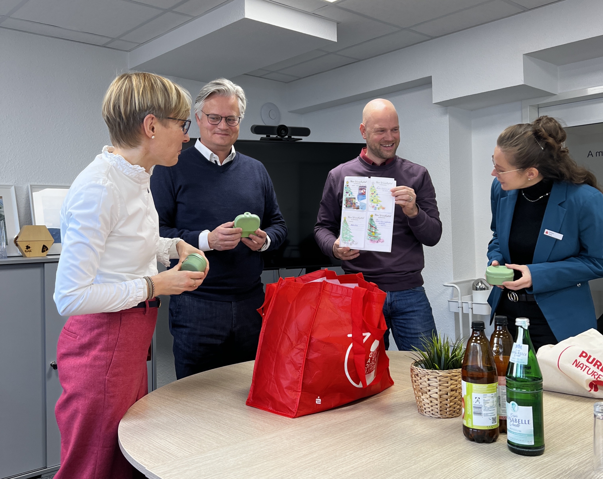 Mitarbeiterinnen der Sparkasse Melle kamen vorbei, um die liebevoll gestalteten Wunschlisten der Kinder aus den Wohngruppen persönlich entgegenzunehmen.