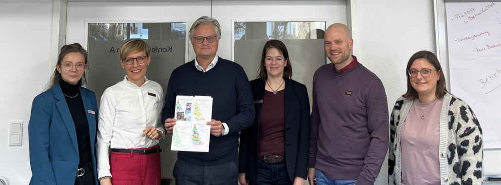 Mitarbeiterinnen der Sparkasse Melle kamen vorbei, um die liebevoll gestalteten Wunschlisten der Kinder aus den Wohngruppen persönlich entgegenzunehmen.